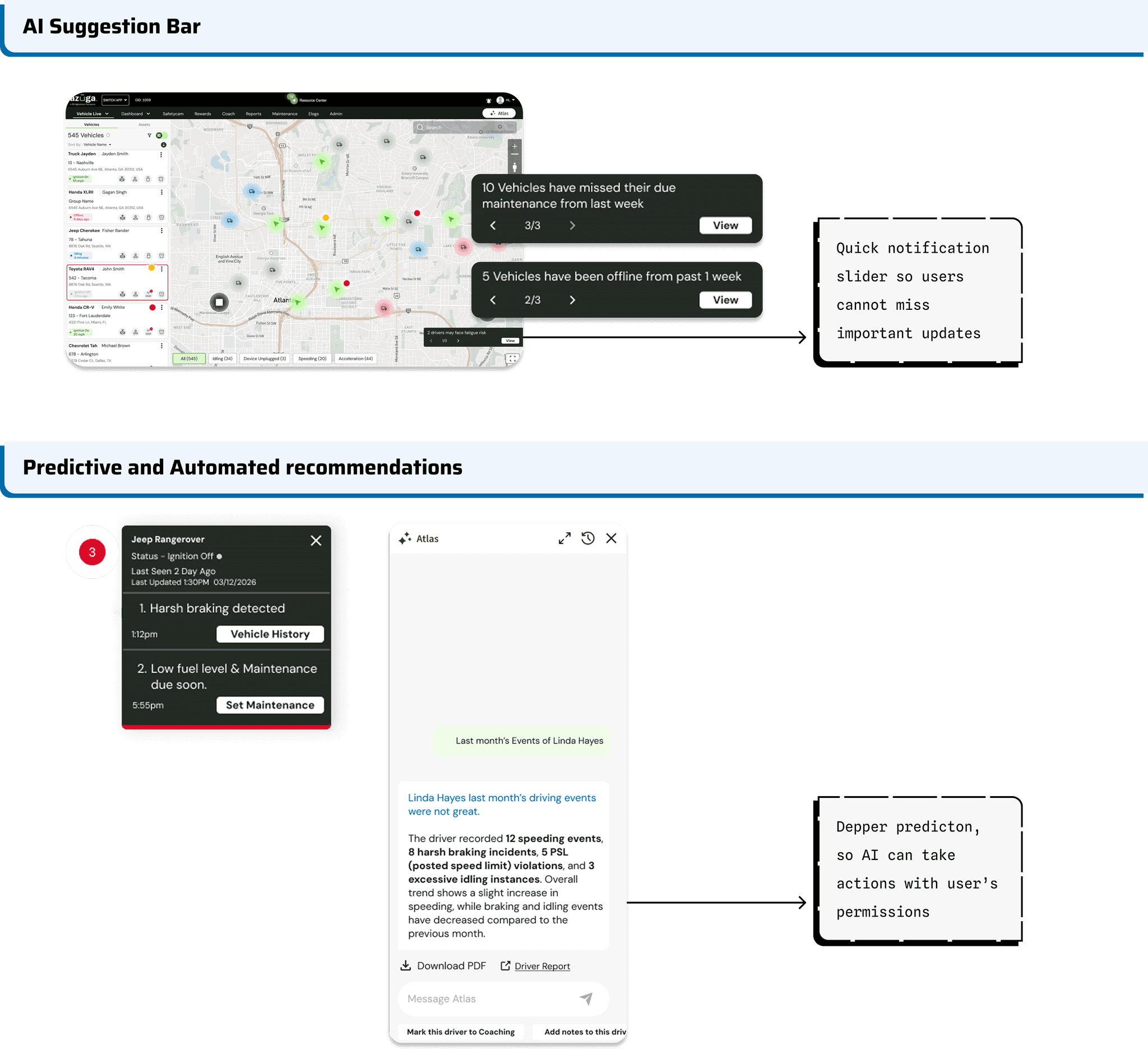 Exploring how AI can enhance fleet intelligence by building on existing systems rather than creating new infrastructure from scratch. The work focuses on defining a framework for AI integration—identifying high-value use cases, evaluating technical feasibility, and shaping how AI-generated insights can fit naturally into existing dashboards, reports, and workflows.