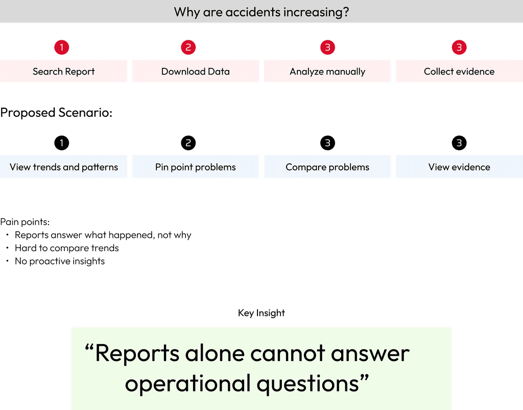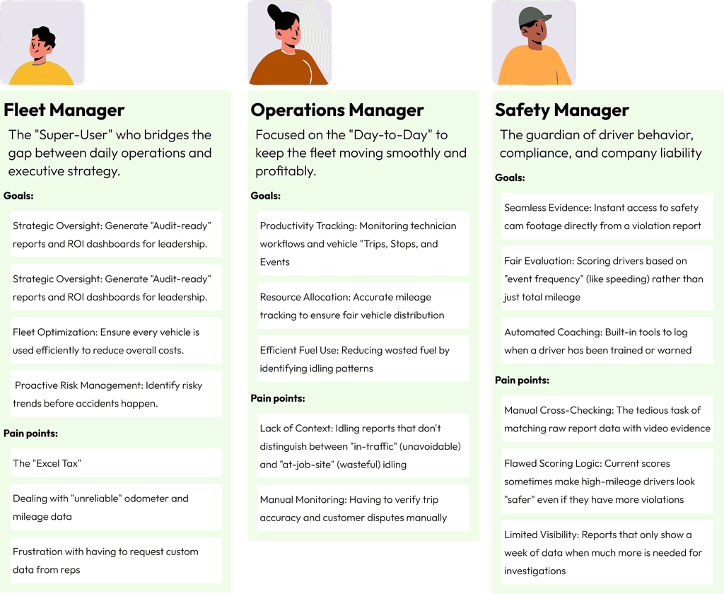 SafetyIQ was originally designed to help insurance teams analyze driver risk and safety patterns through advanced analytics dashboards. As adoption grew, we saw an opportunity to bring these powerful insights into Azuga Fleet, where fleet managers could proactively improve safety operations. This required translating complex insurance analytics into actionable operational insights for fleet teams.