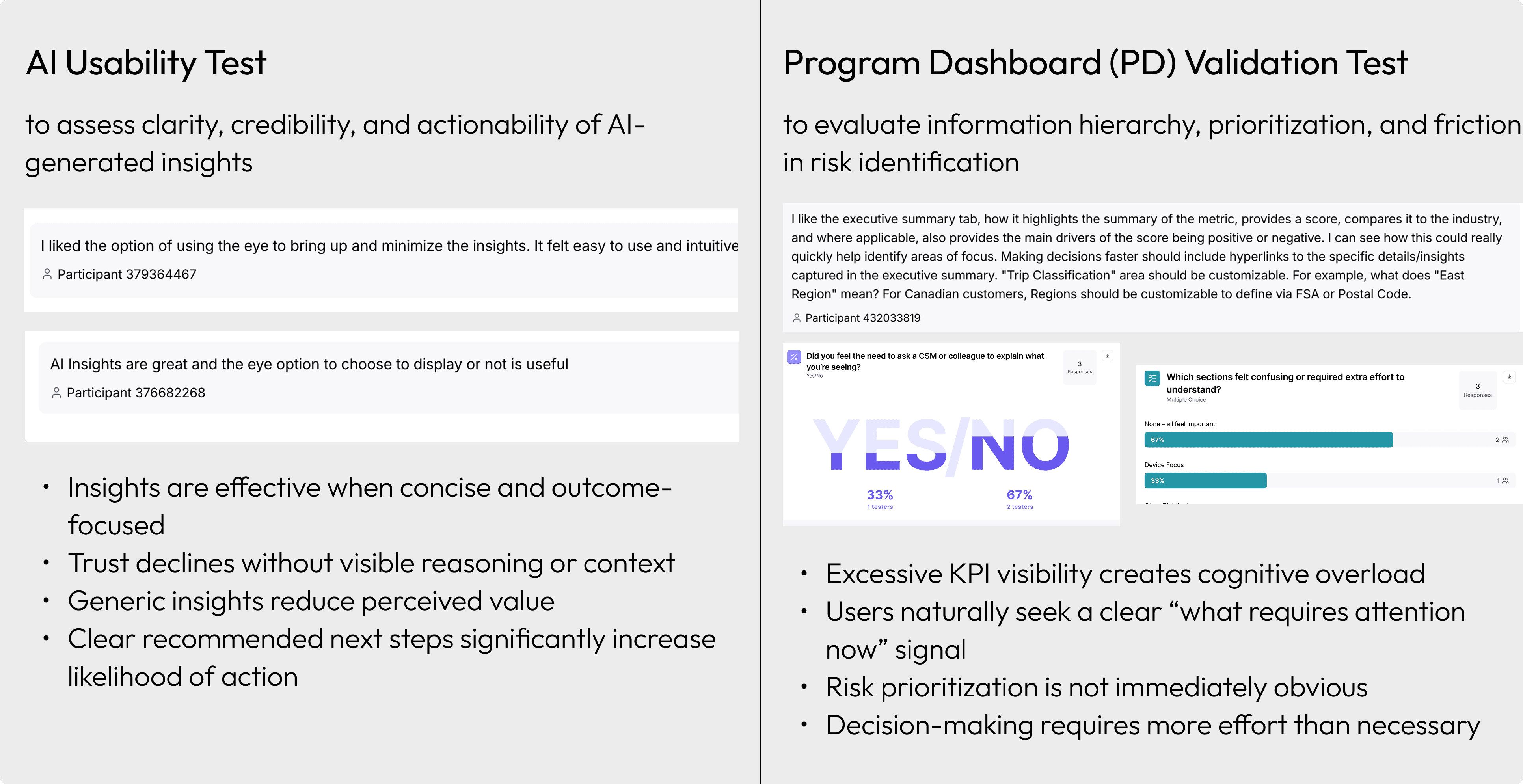 SafetyIQ began as a focused dashboard designed in 2024 for a small but growing set of customers. As adoption increased, we began validating the experience through usability testing and deeper user research to better understand evolving needs. The next phase introduces AI-driven customization, enabling users to surface the insights that matter most to them.