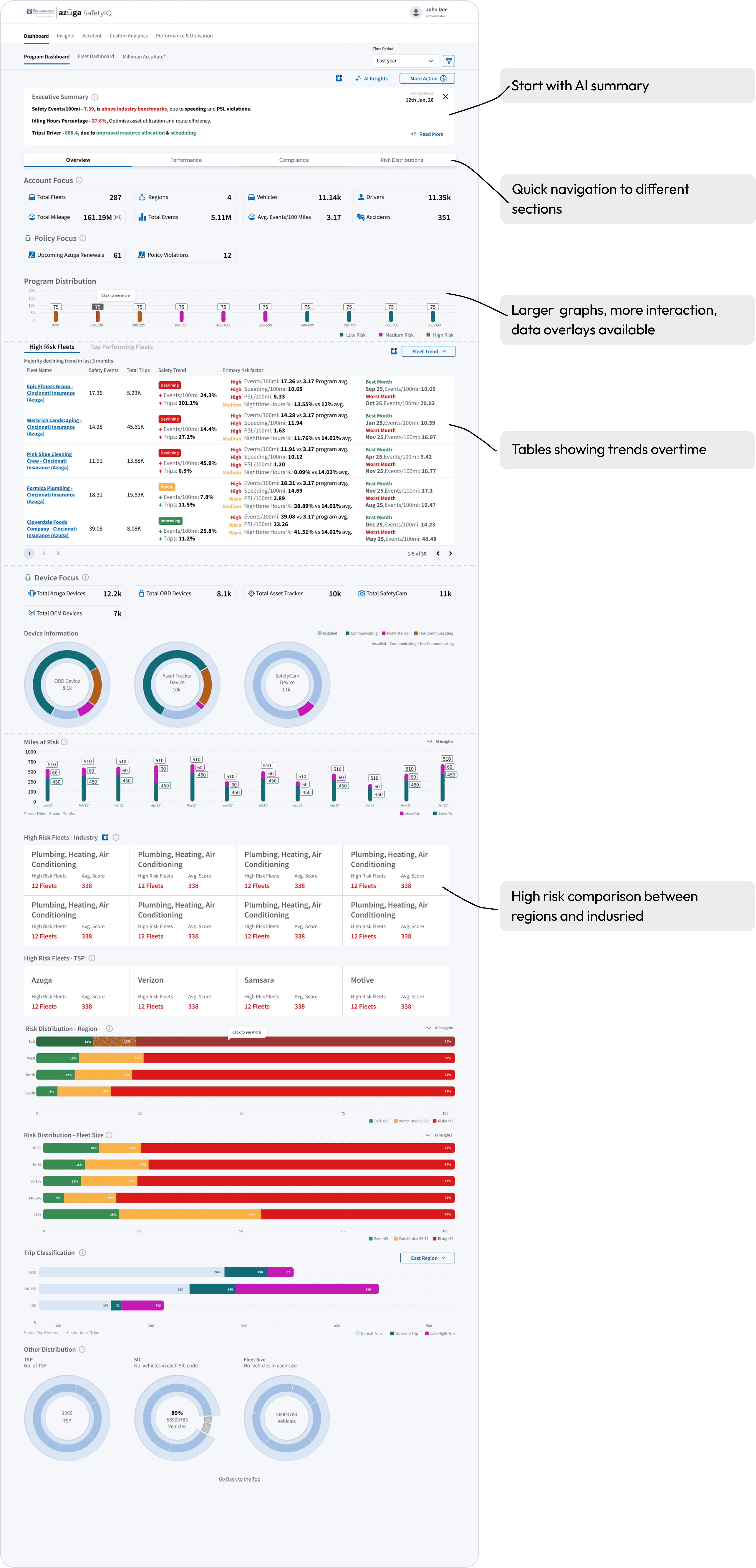 SafetyIQ is a fleet intelligence dashboard that analyzes driver behavior and safety events to help fleets understand risk patterns, improve driver performance, and make safer operational decisions for Insurance companies.